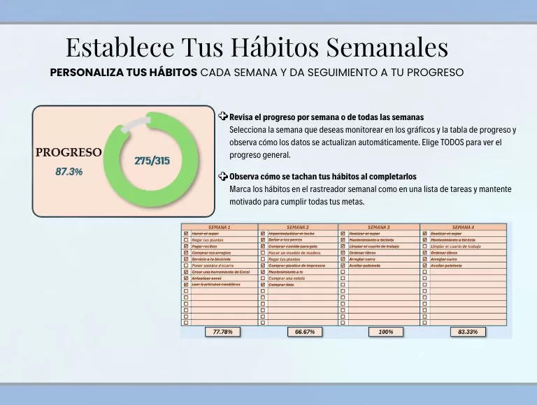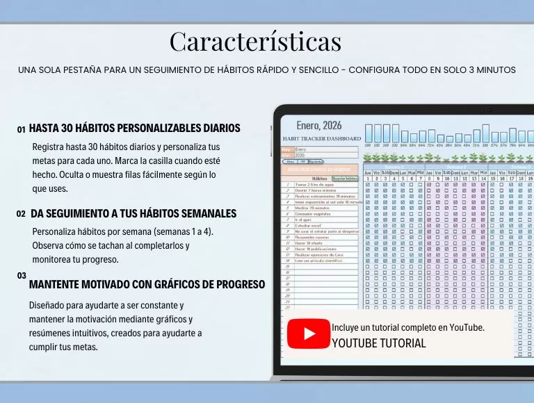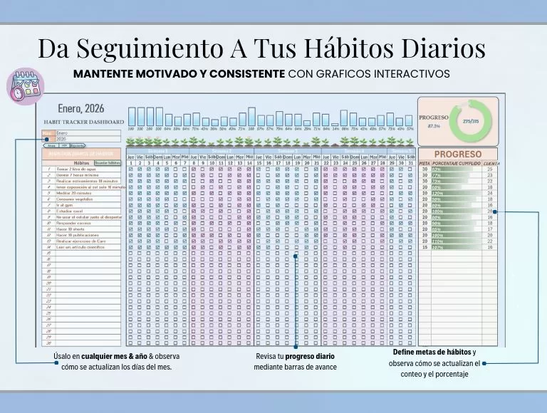 Este Habit Tracker en Excel está diseñado para ayudarte a mantener constancia mes a mes, sin complicaciones.